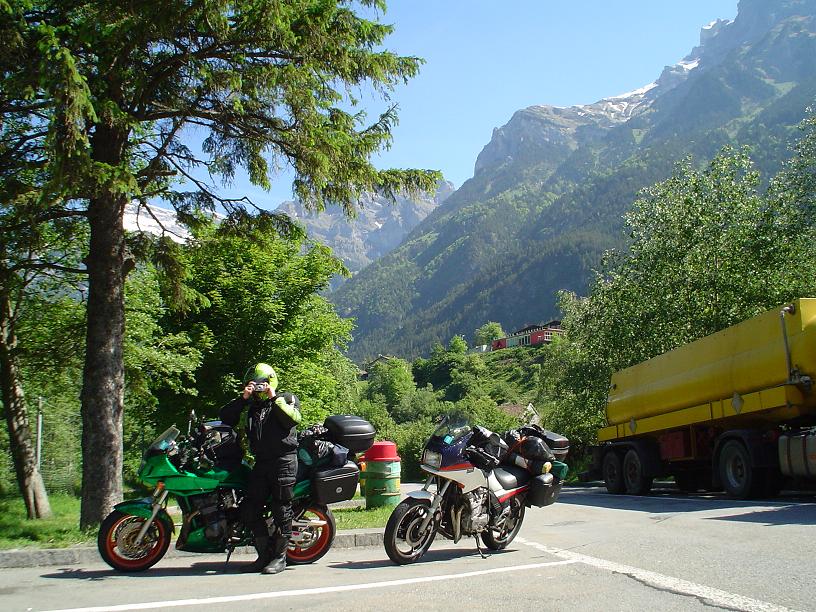 We set-off early again - about 8:30am and worked our way through Switzerland. It really was a very pleasant way to spend the morning - the weather was very good, the scenery was like a postcard, and the roads were excellent. Daz had a small problem with the tunnels - he found the noise from his exhaust resonated off the walls and he found it very unpleasant at speeds over 60mph. As long as we slowed down through the tunnels it wasn't a major issue.