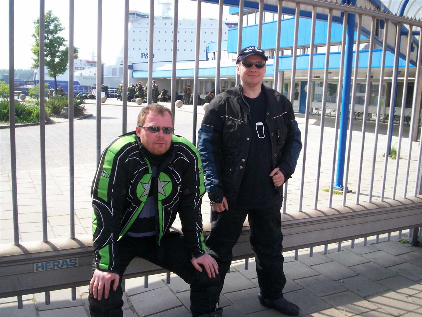 After many hours riding we arrived at Rotterdam. Nig had spend most of the last hour stood on his pegs because he could no longer bear to sit on his seat!