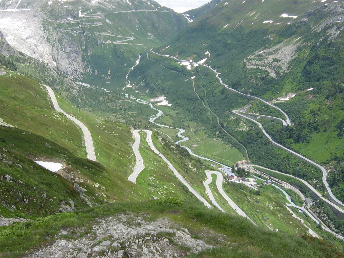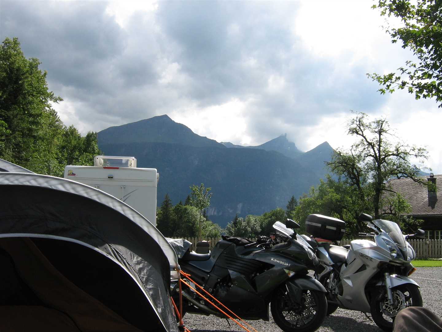 We continued into Switzerland and unfortunately out of the mountains. We were heading east towards the Grimsel Pass, but this meant we had quite a few miles along the lowlands through Switzerland. We had decided not to buy the Swiss vignettes which meant we had to stay off the motorways, which we thought would lead to a more interesting ride. We were wrong, the roads were tedious, 50 mph away from towns 25 mph in towns, no overtaking anywhere, and a lot of Swiss drivers did not like bikes. We decided to ignore the no overtaking nonsense, but even so it was not a nice ride.