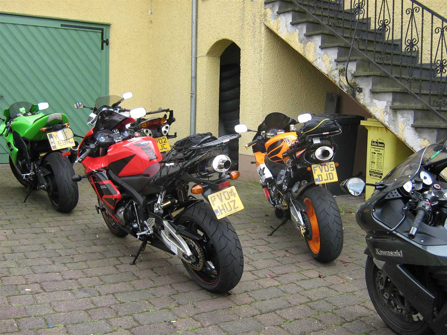 While we were unloading the bikes three other bikers turned up, two on CBR600s and one on a ZX10R. It turned out they were local to Nig, one being very local living literally just around the corner from him. They had been to the Nurburgring before and offered to take us to the 'ring and show us what you do. We also learnt that the 'ring generally only opens to the public for a couple of hours each evening, 5:30pm and 7:30pm which we didn't know, so it was just as well we met up with them.