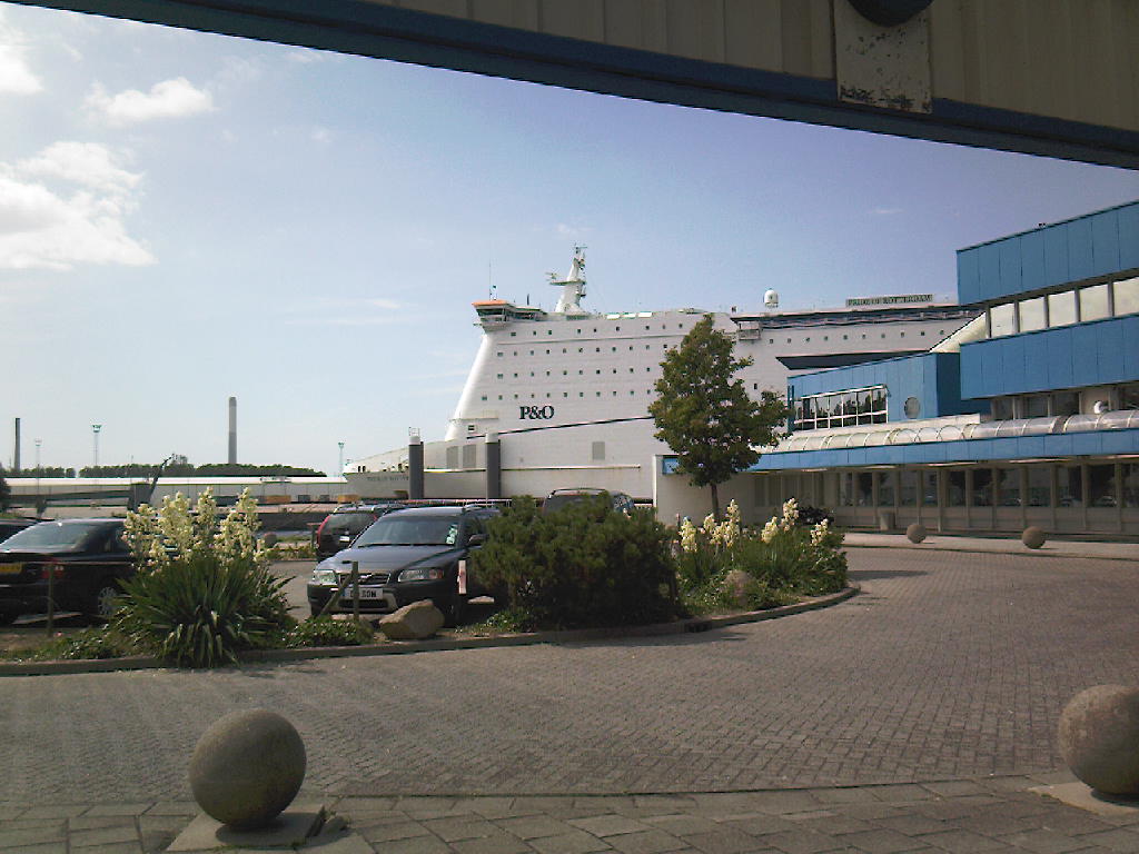 We got to the docks at around 3pm, as usual there was nothing there so we just chilled out by the bikes and nattered with the other travellers around us. There was an older couple on an old Goldwing; they'd toured down through Germany to Italy and back, on the way the exhaust had broken and the old fella had fixed it with a bean can! Top lad! There was also a couple on a BMW who were really into touring the BMW way. It become very clear that we were the only ones who had encounted consistantly good weather!
