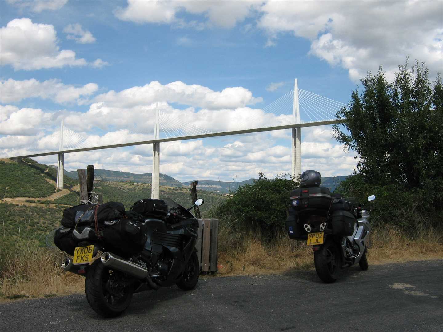 After another short stint on the motorway out of Toulouse we turned off heading towards the D999. This was a fantastic round - not as tight and twisty as the roads in the Pyrenees but fast and flowing. We followed this road all the way to Millau. At one point on this road a large buzzard swooped down just in front of my bike, grapped a mouse and took off as we drew along side. The bird saw us and tried to outrun us without climbing, so for a few seconds I was riding alongside this huge bird no more than 3 or 4 feet away. then it decided it couldn't outrun us so it dropped it's mouse and climbed, it was a very spectacular sight - but Nig told me later his heart had skipped a beat or two as he had flashbacks of his close encounter of with the bird heading into Ainsa!