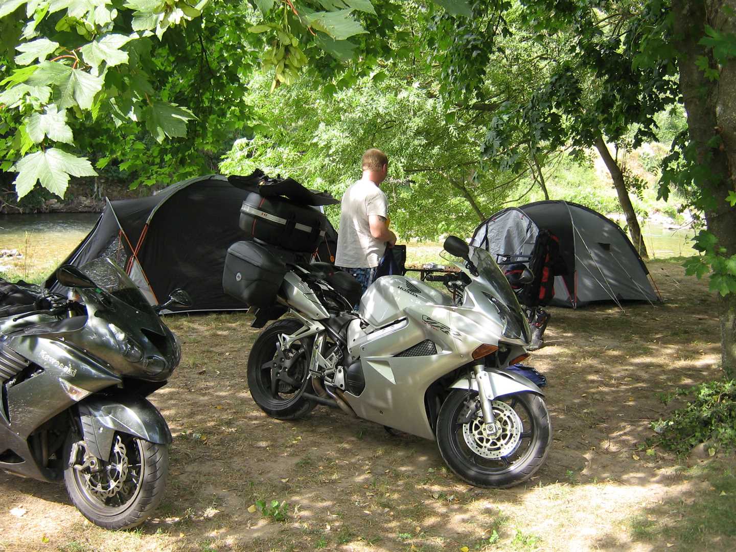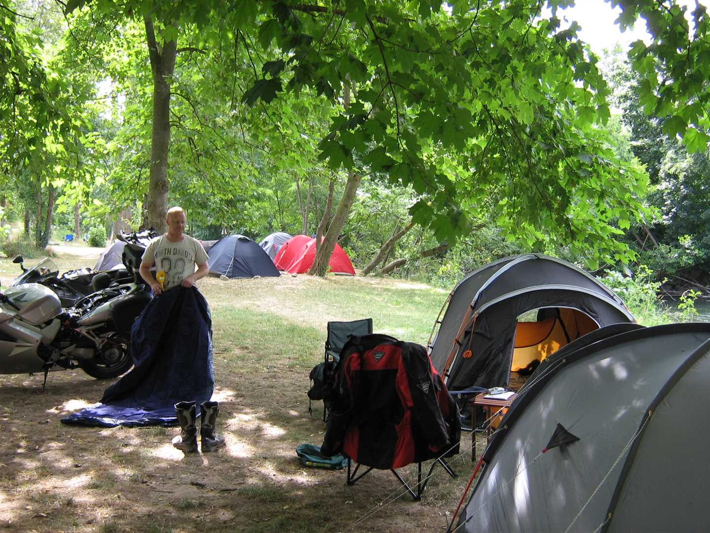 The camp-site (Côté-Sud Campsite) was very nice and also very cheap - 8 euros each! Our pitch was in the trees by a river. We nipped out to the local supermarket for some food for that evening and breakfast in the morning and a few beers. It was very warm so we put the beers in the river to cool, while we washed our clothes in the washing machine on-site.