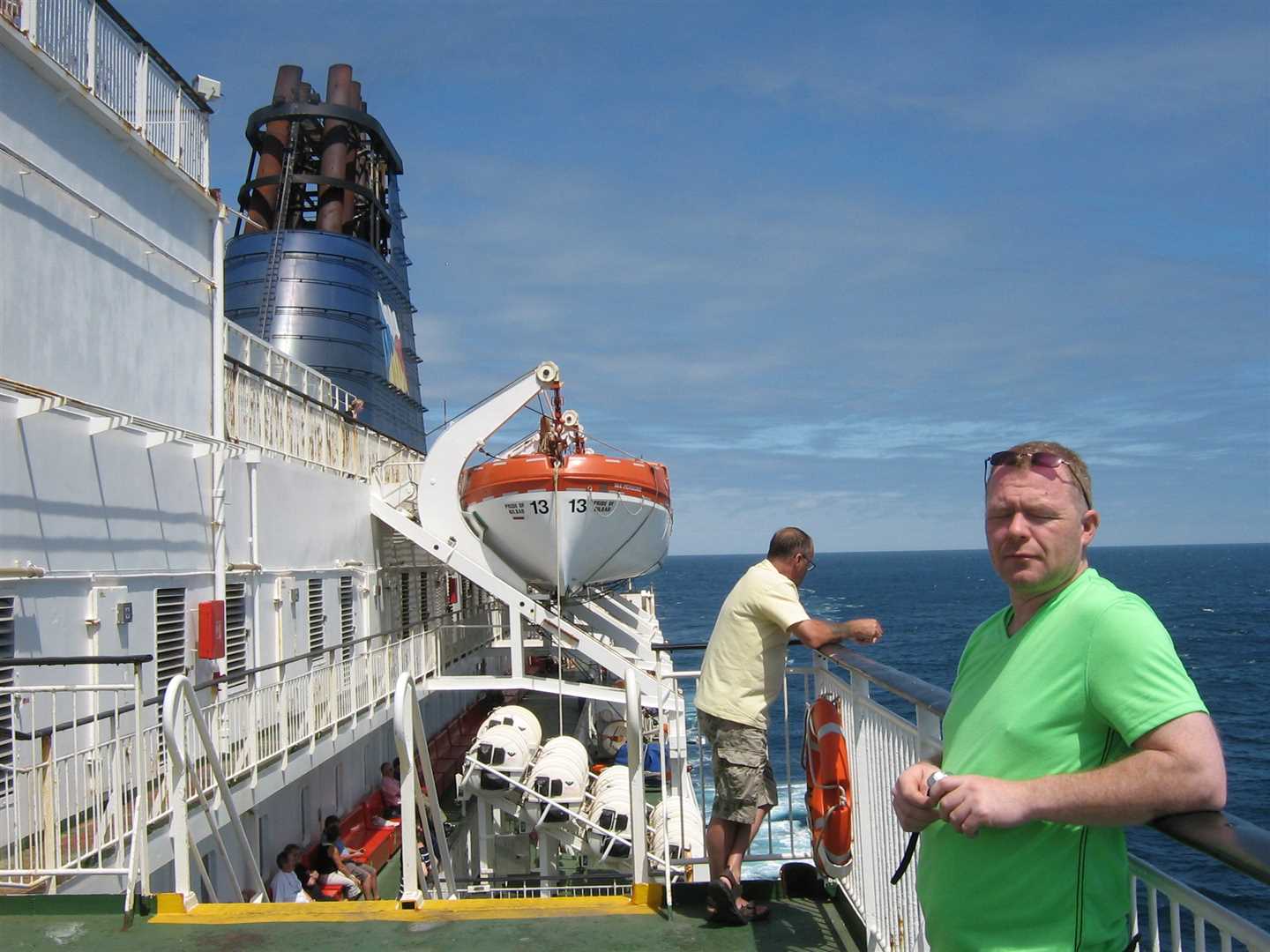 We decided to go and chill out on the deck as it was quick a nice day if a little windy, and I didn't feel too ill when outside. We had lunch with our breakfast vouchers (a baguette, packet of crisps and a drink) and even had to put sun cream on as we were both burning.