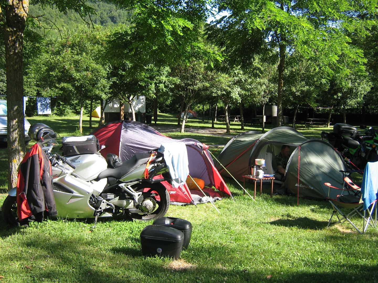 The camp-site was basic but nice, with a bar and clean toilets and showers. The showers did cost 2 Euros each mind which I thought was a bit steep! The site was on a large hill but they had levelled it out to make a series of large steps so you could pitch on level ground. This did mean we couldn't take the bikes on the site so we had to park at the bottom and carry all our gear from our bikes to our pitch. Fortunately we weren't too far away so it wasn't as bad as it could have been.