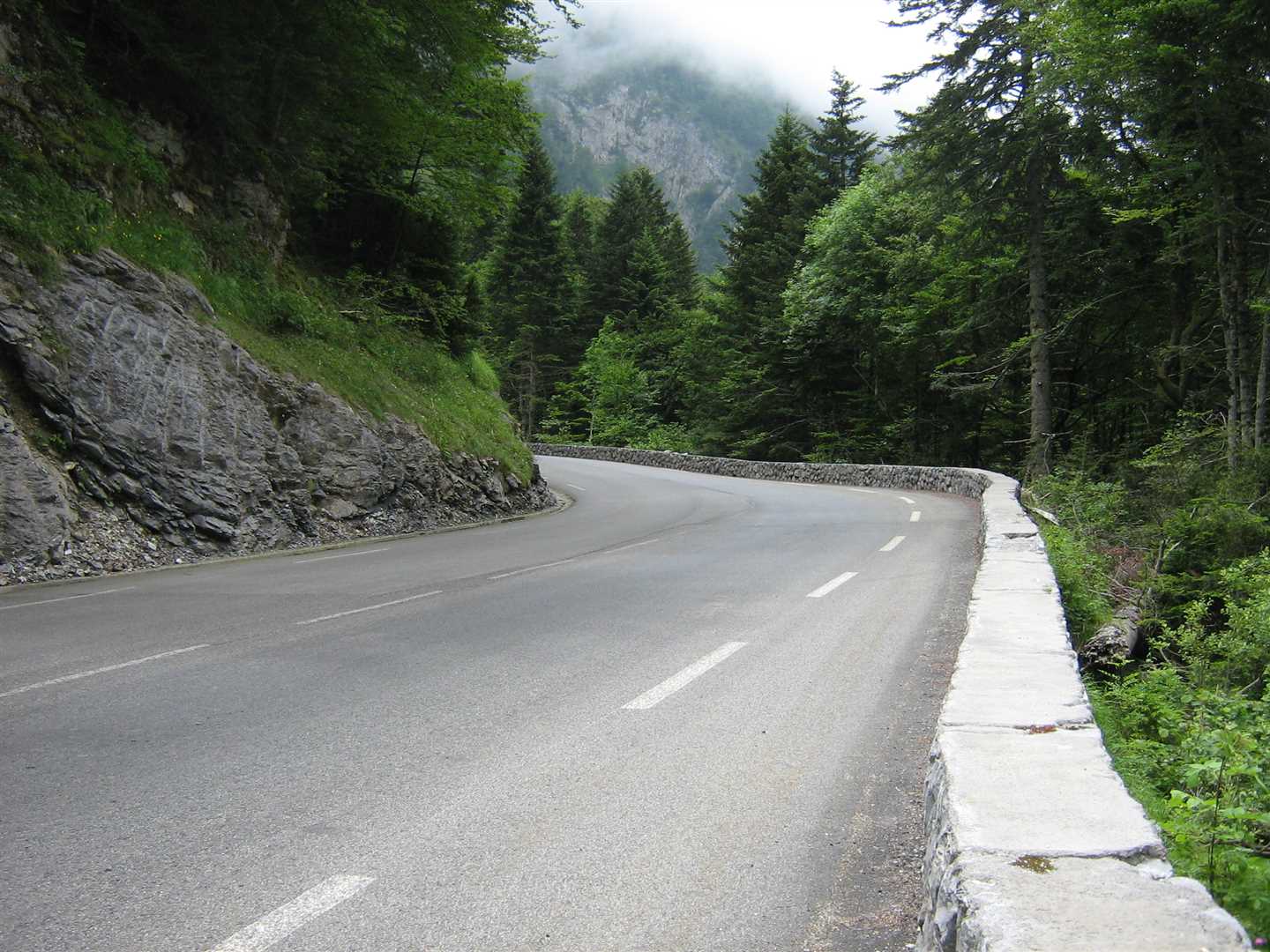 We were very lucky with the weather though. The cloud cover remained for a while, but it was warm and the clouds were laying just above our highest summit so we always had very good visibility and spectacular views. As the day progressed the sun came out and it turned out to be a glorious sunny day. Only two weeks later when the Tour De France passed over the same roads the weather was dreadful.