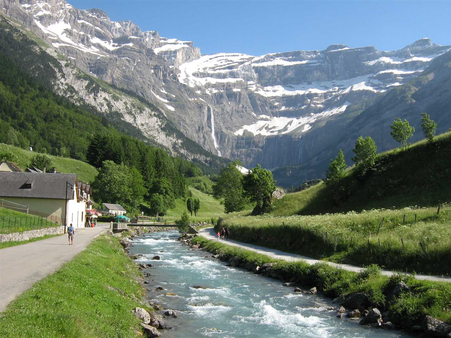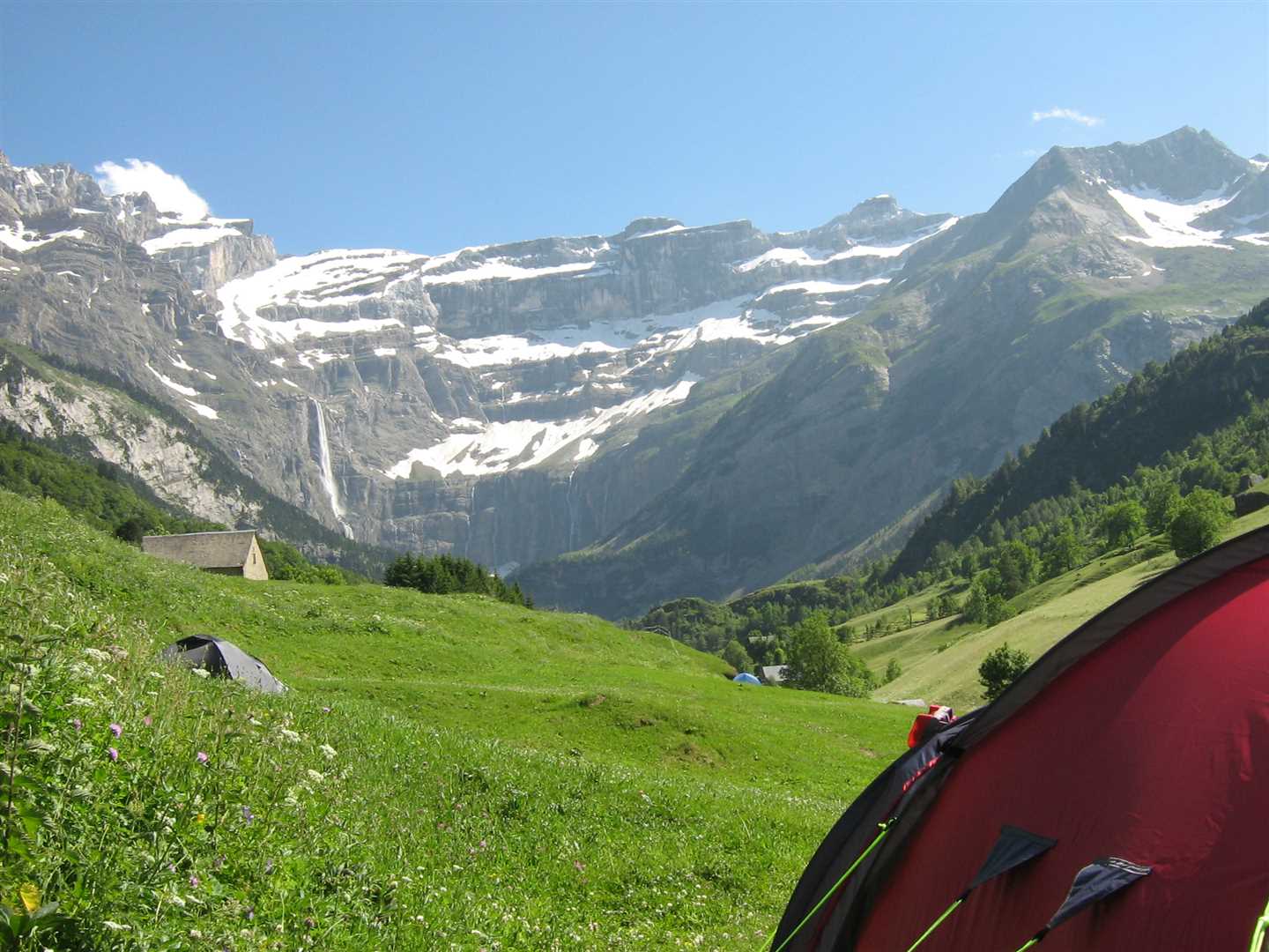 It is without doubt the most incredible camp-site I have ever stopped at. On all sides you are confronted by mountains towering above you but to the south is a large circle of mountains called the Cirque de Gavarnie with a large waterfall cascading down 1384 feet at an average of 50 feet wide (I looked it up!). This becomes a brilliant blue river which surged it's way past our camp-site. I pitched my tent facing the Cirque de Gavarnie so it would be the first thing I saw on the morning. I was so pleased Daz had persuaded me to carry on!