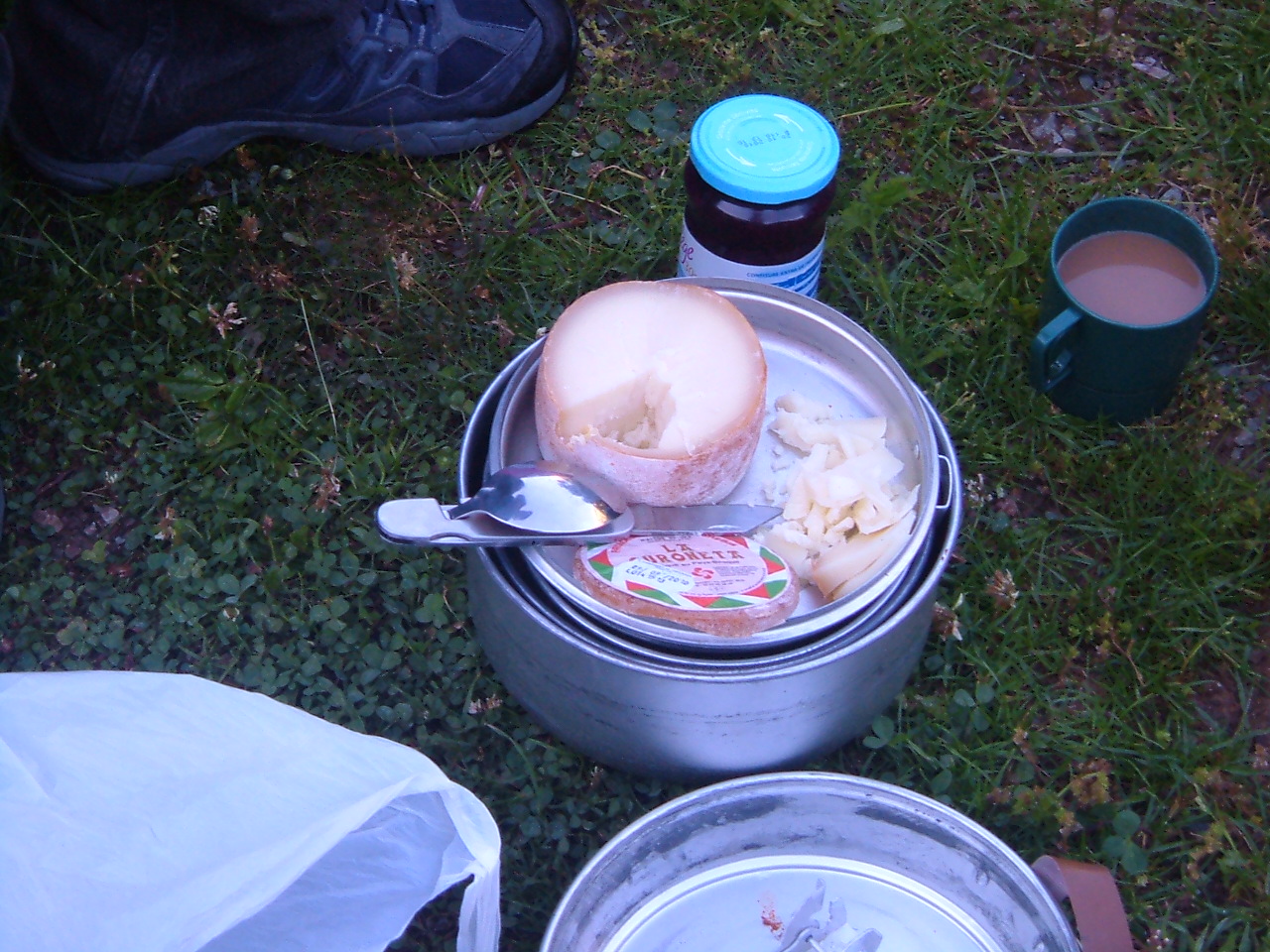 During the night I had to get up to remove the cheese from my tent. It was very, very smelly! While I was at it I thought I may as well nip out for a call of nature. I was expecting it to be as misty as it was when I went to bed but I was wrong.
