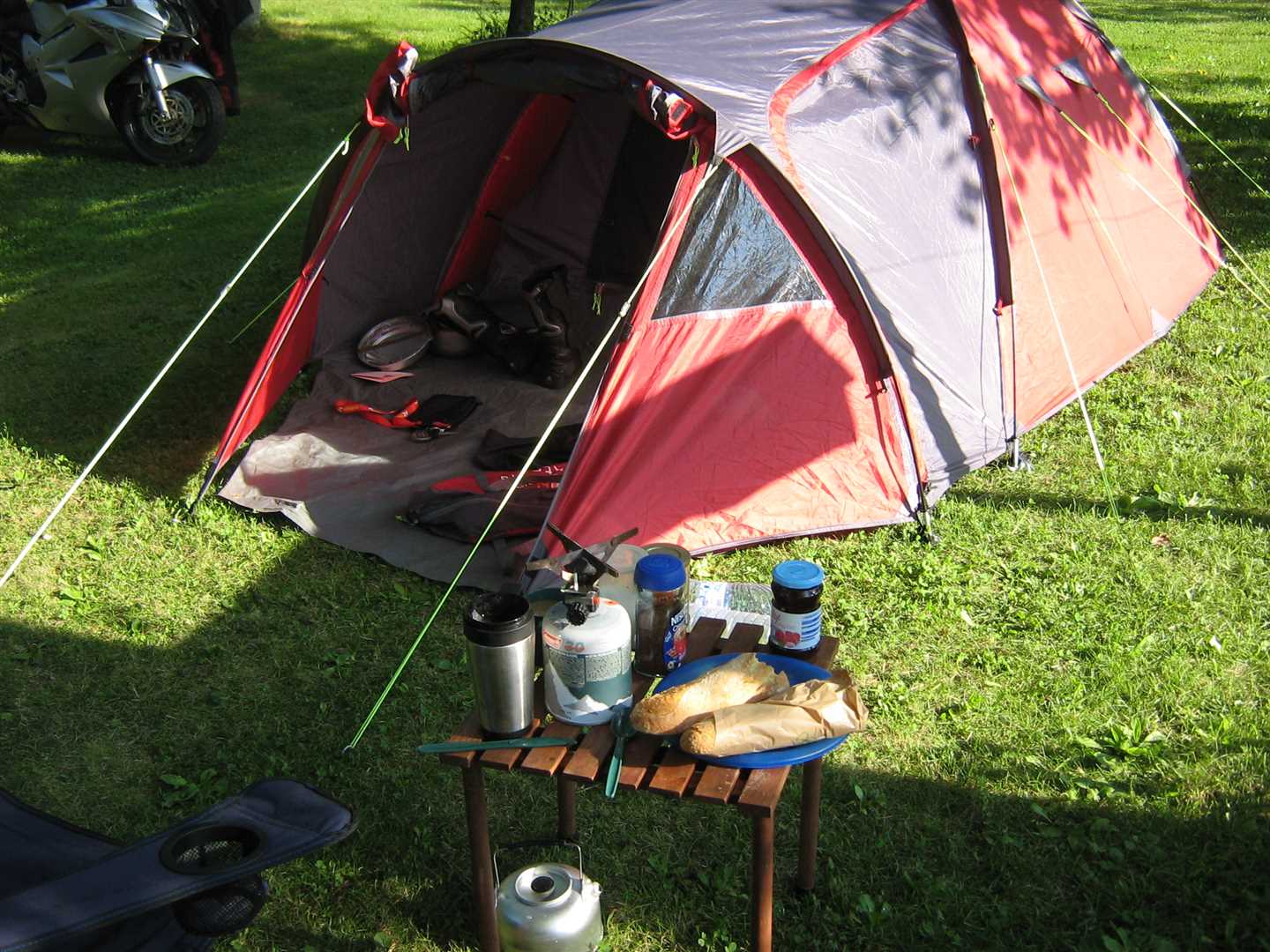 We investigate the playing fields and found they were actually OK, they were down a hill and hidden from Hicksville central and the ground was pretty good for tents, so we pitched up. By this time were were both very hot and putting the tent up was a real effort – well it was for me, Daz didn't seem to have much problems at all much to my annoyance!