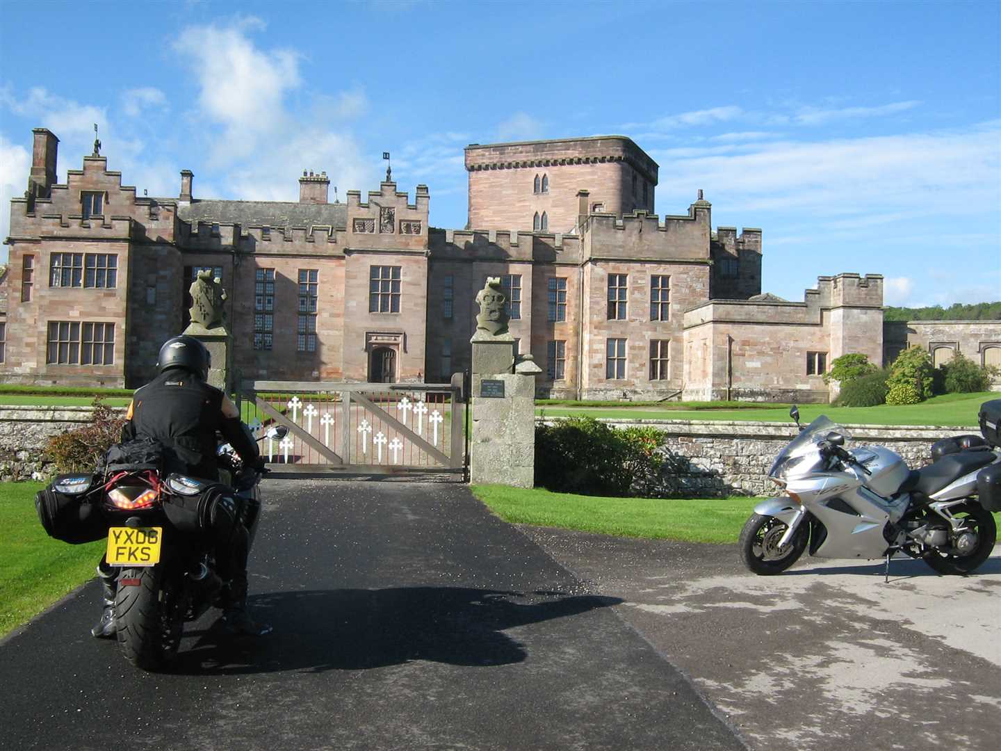 We got up to glorious sunny weather, it was such a contrast to the day before. After a very nice breakfast we loaded the bikes and set off around 10. We had a quick ride up to look at the castle, which is a private castle with no public access. We took a couple of photos and then set off.