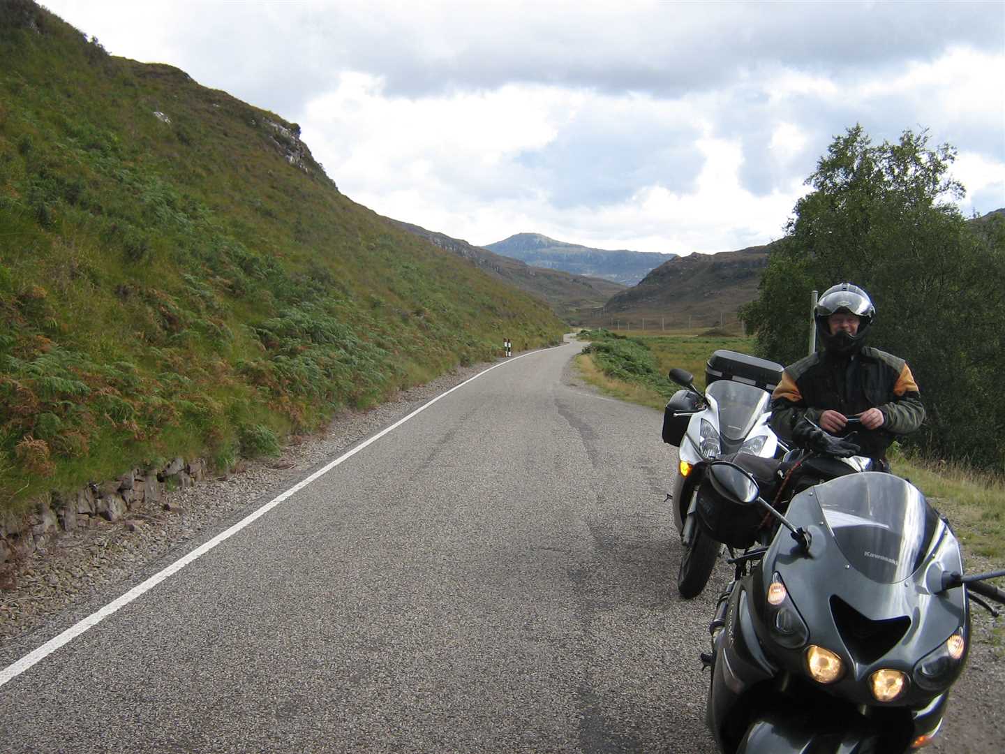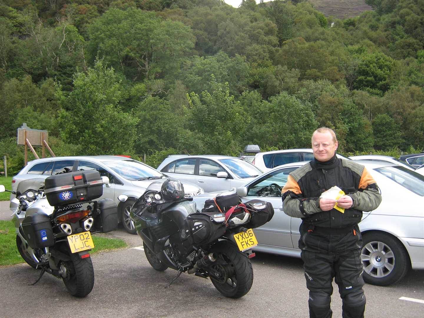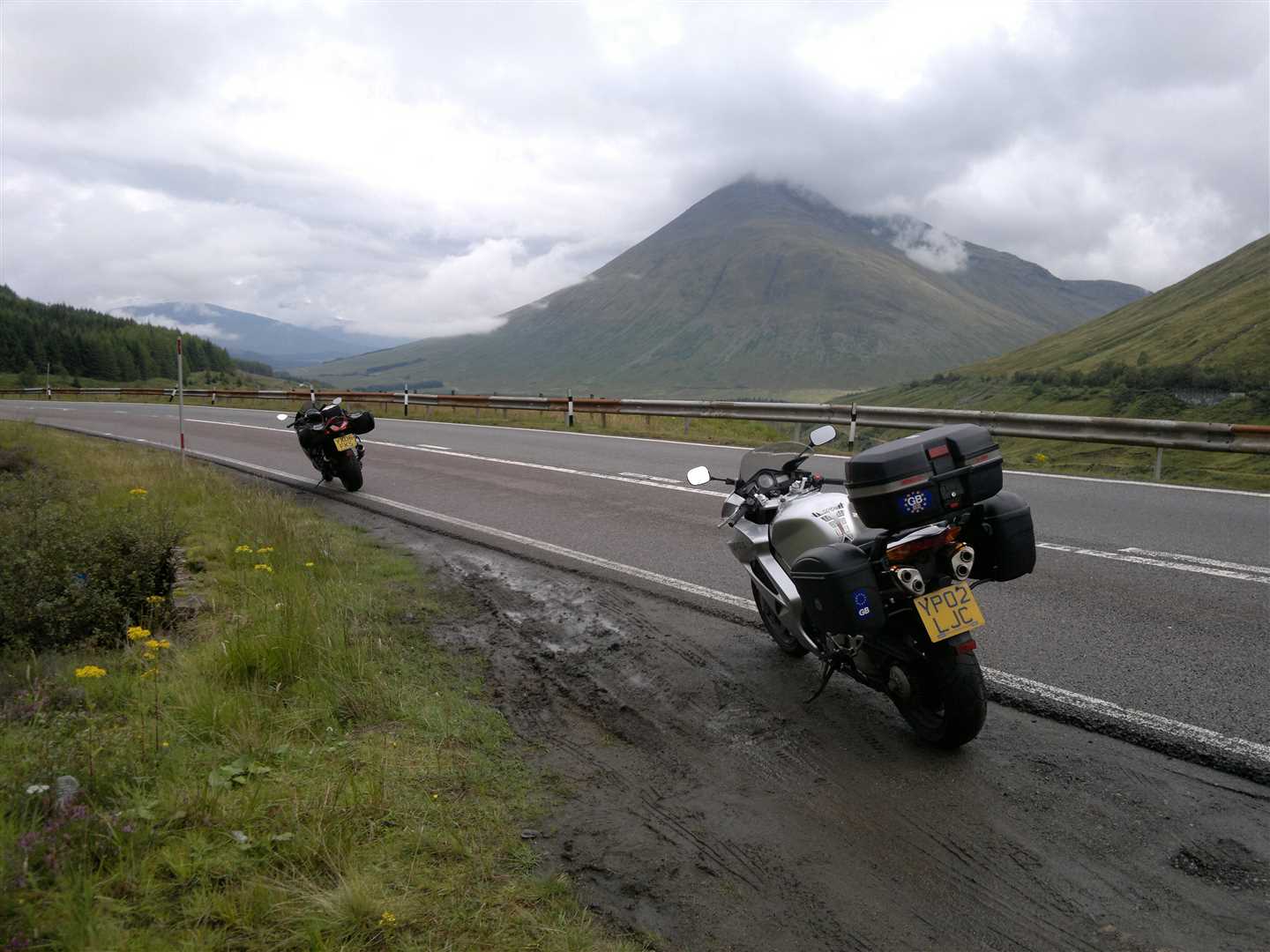 The roads we were riding are some of my favourites. Heading north from Loch Lomand we were soon at Glen Coe which is simply stunning. Unfortunately the weather took a turn of the worse as we headed away from Glen Coe so we put our waterproofs on.