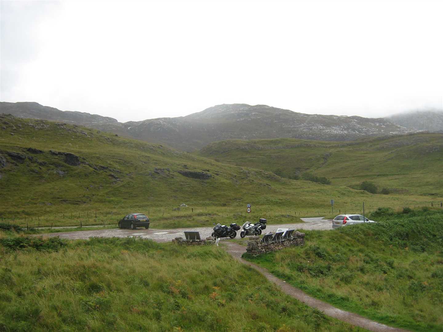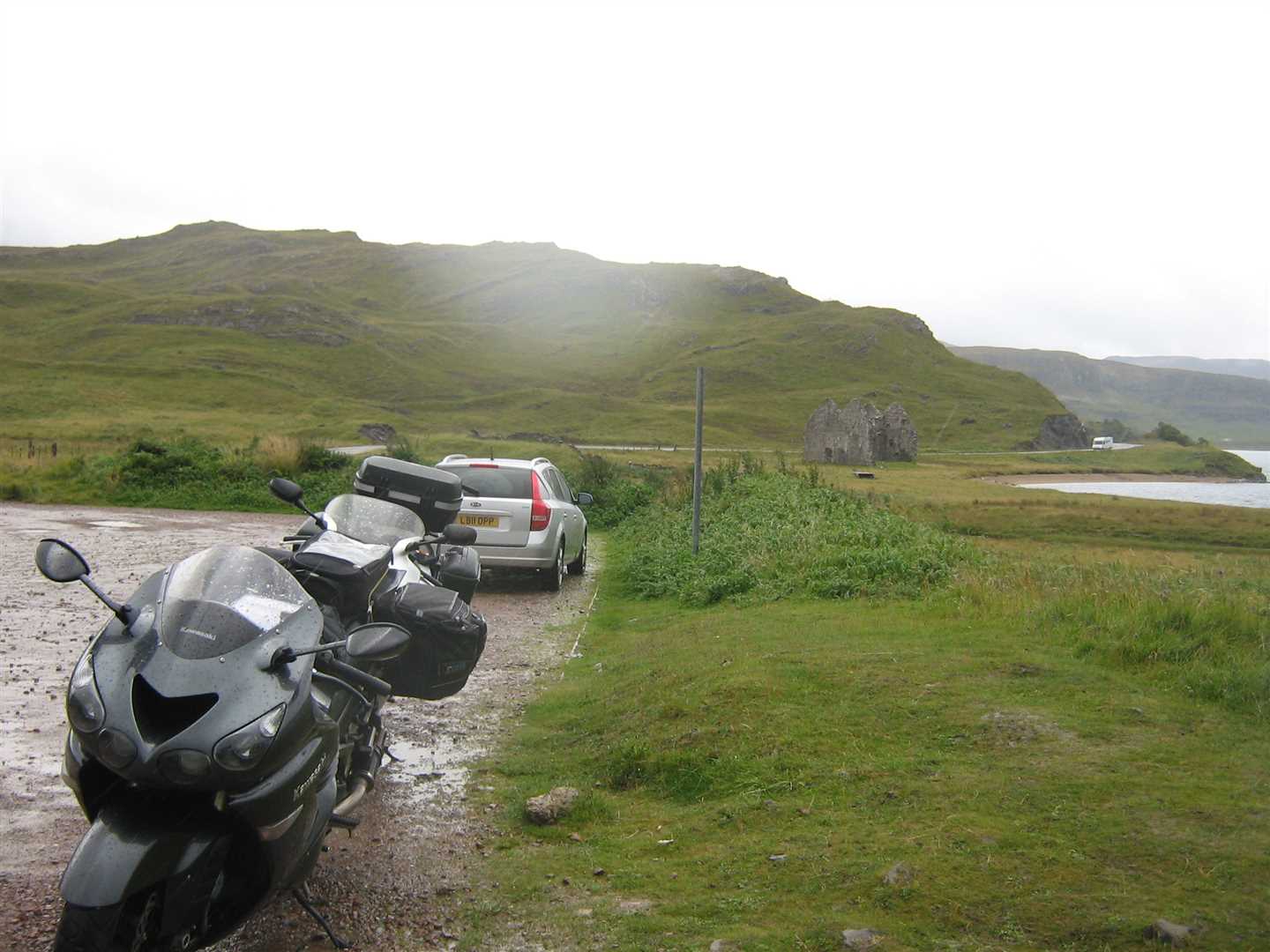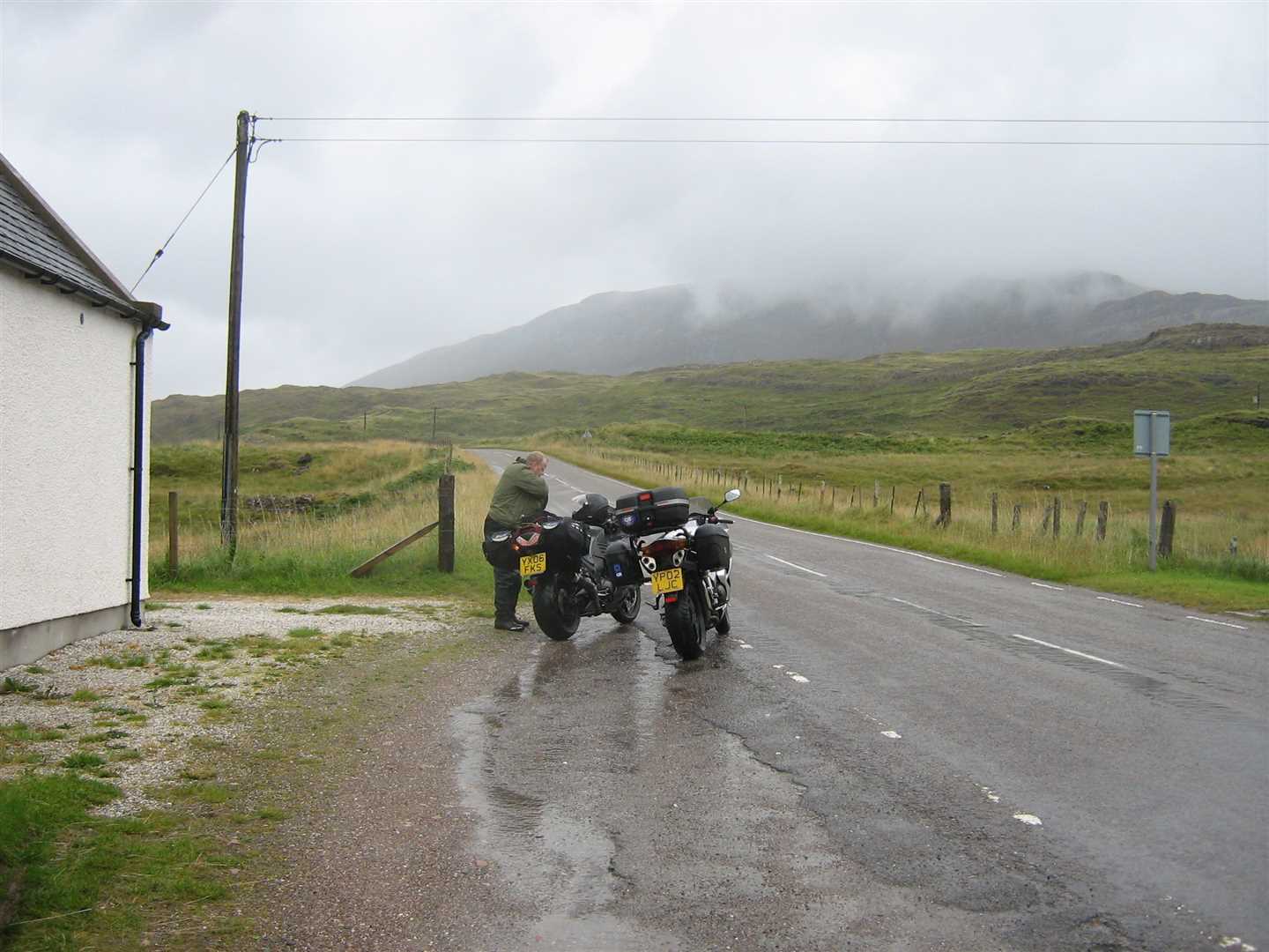 We awoke to a very wet day. After breakfast we were presented the bill and sure enough the crappy meal had cost us £18 each. Nig wasn't happy - wasn't happy at all. I sorted the bill out as Nig was loading he bike. I got all my gear together and we left sharpish. We stopped for petrol in the town and were served by the English owners - this was the least Scottish Scottish town we'd very been to! A very weird place - not sure I'll be in a hurry to return!