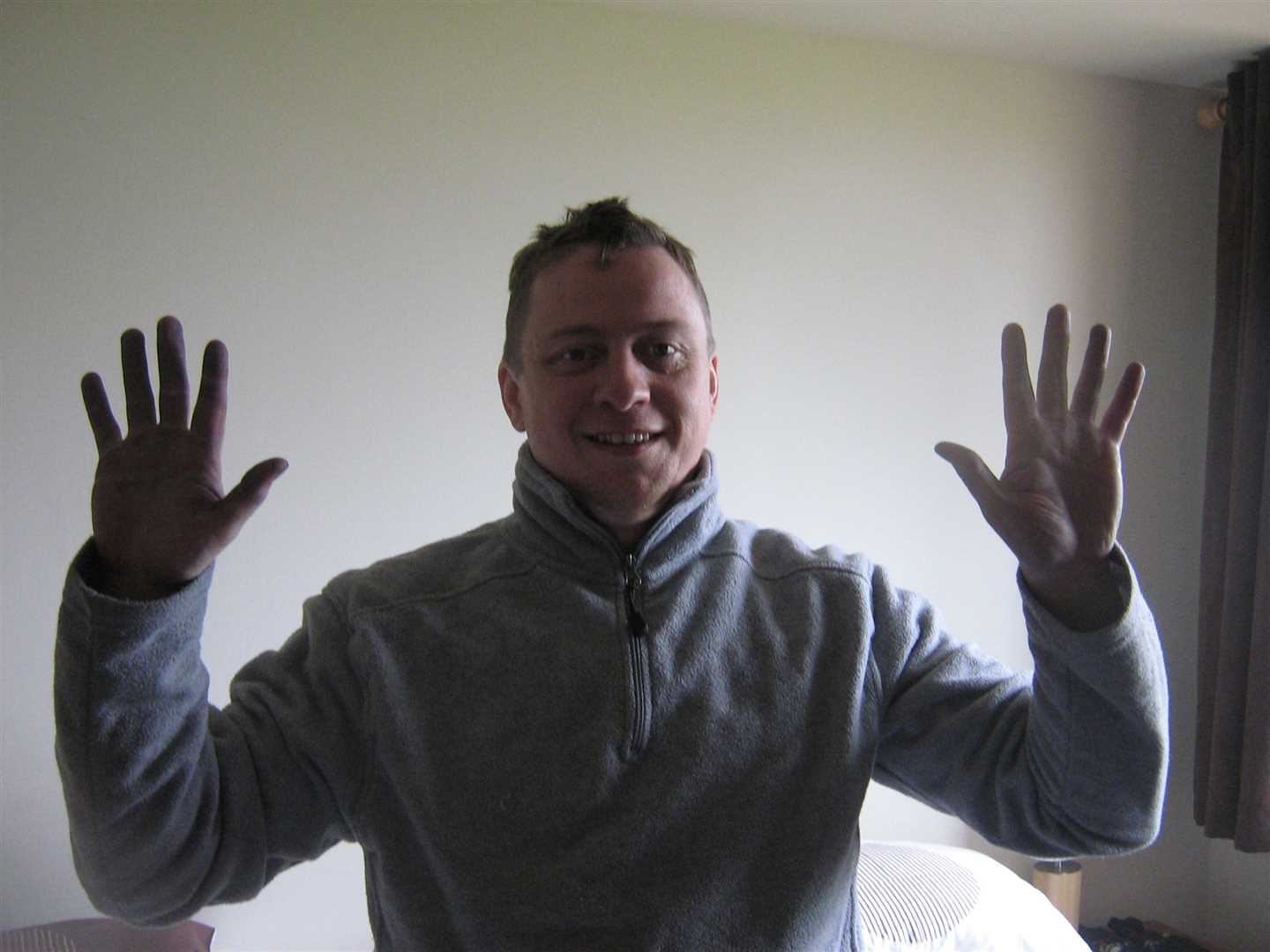 After a very wet but enjoyable ride we arrived at 'Smoo Cave Hotel' in Durness. It was nice to get into our warm room and out of the wet gear. My hands had turned black from the dye in my gloves and the insole of my boots had come loose. By this time my boots were very good at letting water in but very bad a letting water out - so I could feel the water sloshing about as I accelerated and braked - not nice!
