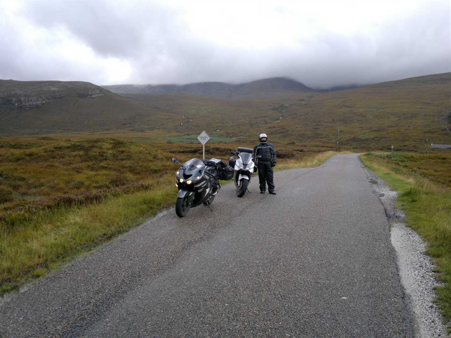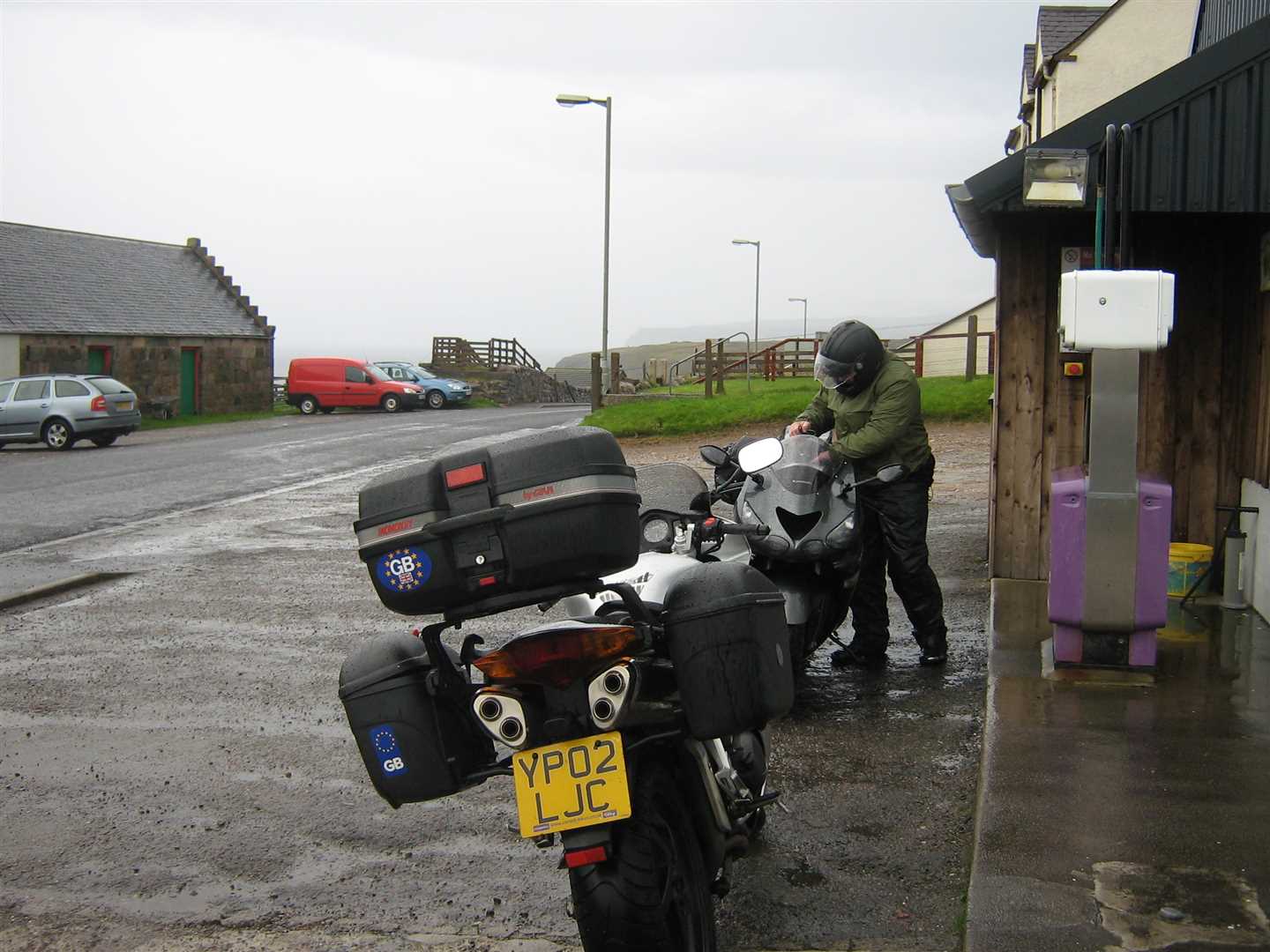We woke up to another very wet morning, so we were in no hurry to get going. We had a leisurely breakfast to try and combat our hang-overs and packed the bikes. After a brief stop for (very expensive) petrol we set off. Again there was no mist, so we still were enjoying fantastic views despite the weather.