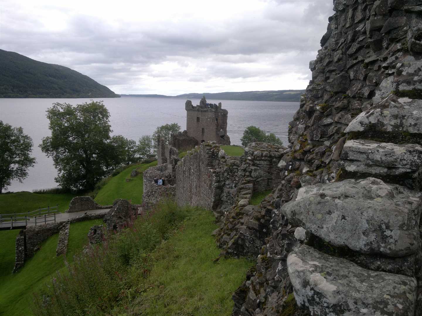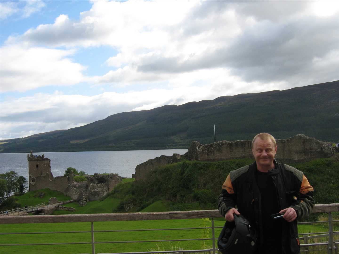 Setting off from the cake shop I glanced in my mirrors and Nig wasn't there. It turned round and returned to the shop to see Nig standing by his bike having a smoke. It turned out he'd had a moment pulling out of the very awkward junction and decided to chill-out for a bit. We set of shortly after and pulled into Urquhart Castle.