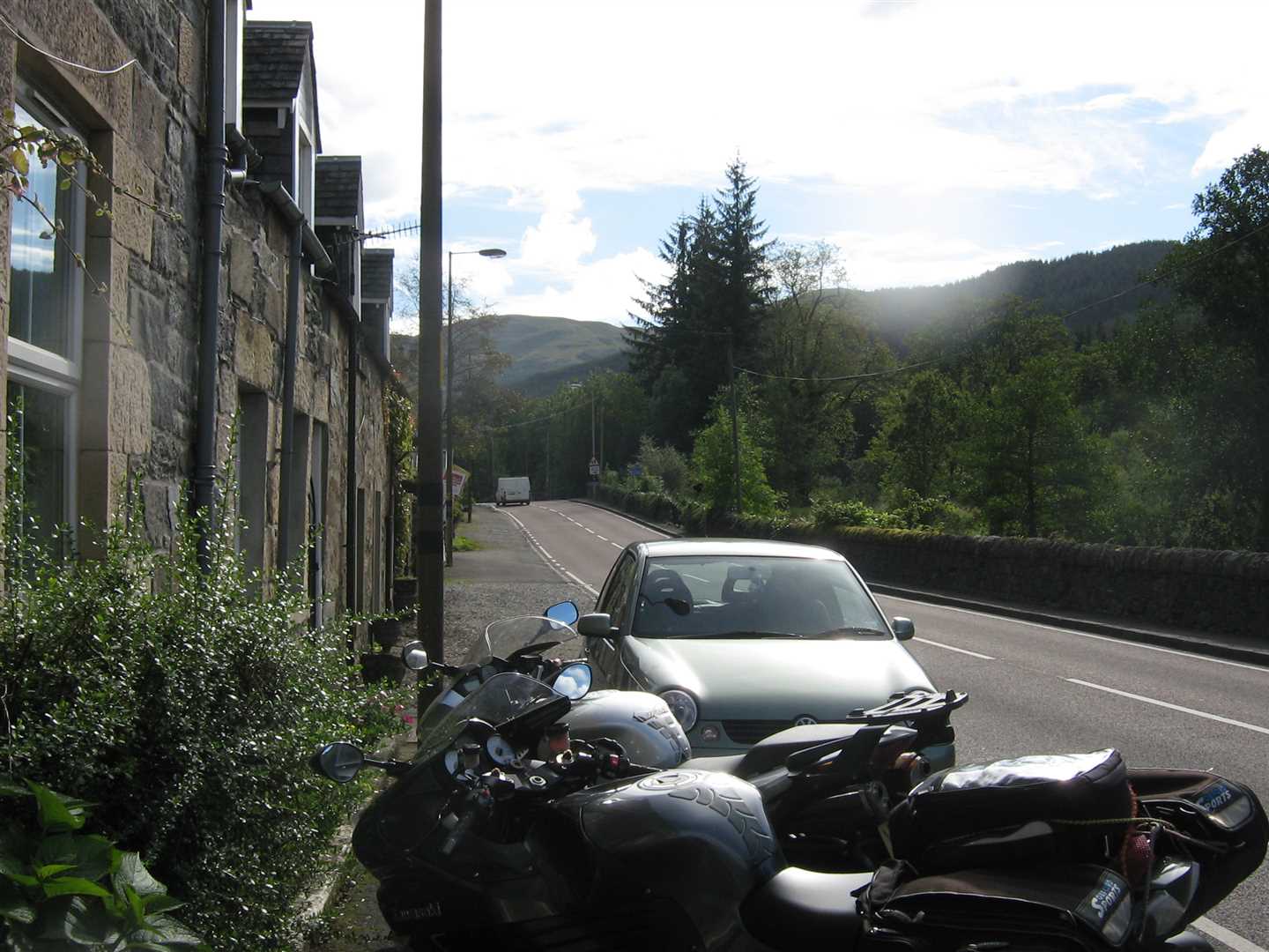 Luckily all the roads were dry from that point to the B & B and we had a really good ride. When we arrived at the B & B our room wasn't quite ready so the owners made us a coffee and we ate the cakes from Drumnadrochit which were very nice.