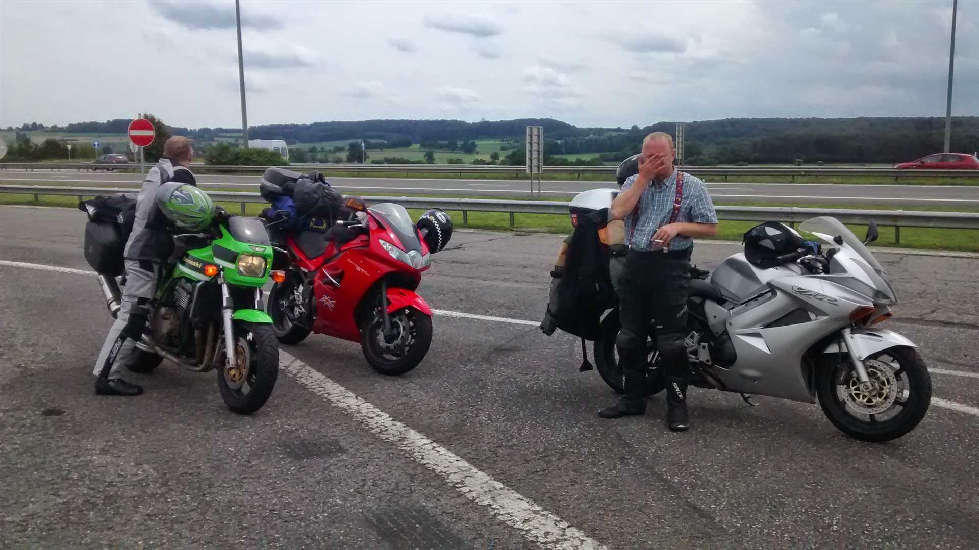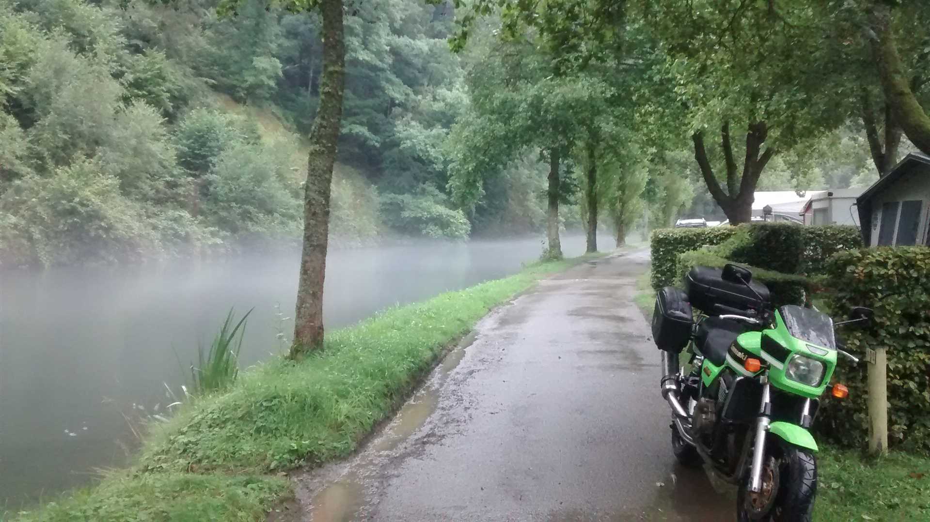 I woke up, hearing Daz packing up. Daz really wasn't feeling well and wanted to head home. We had a quick chat and we decided we'd head for Luxembourg and camp there for the night and then see how he felt after that. I got Nig up and we both hurriedly packed up.