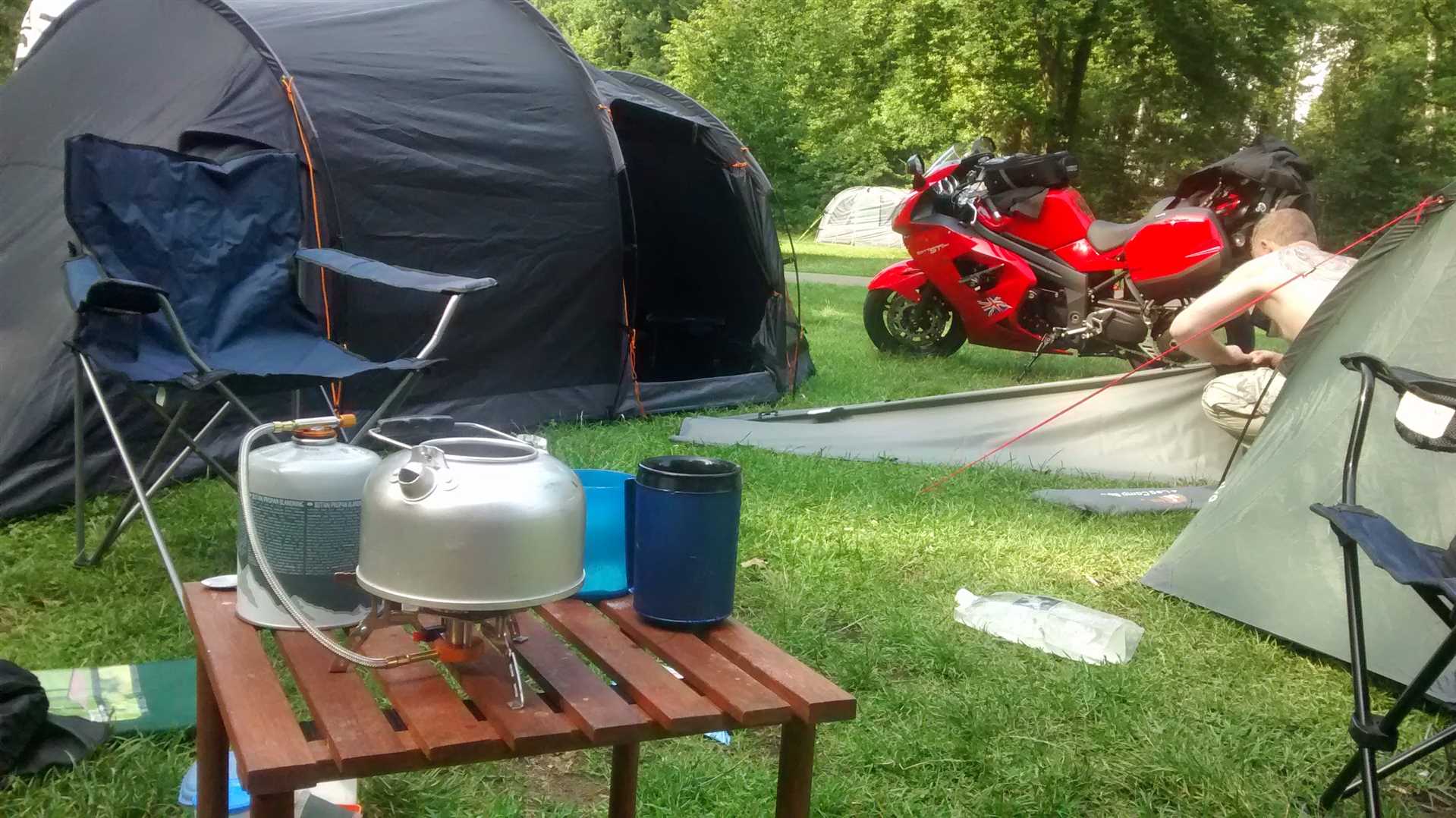 I slept very well and it was a lovely sunny morning for packing up the tents. We loaded the bikes and set off.