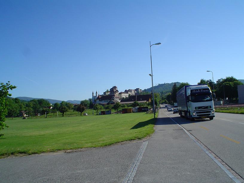 I had a very good nights sleep, but woke up at 6am and went for a shower. The shower was coin operated - you got 3 minutes of hot water for 1/2sfr. Fair enough, I thought, plenty of time. I was half way through washing my hair when I leant back in the shower and accidently nudged the temperature control onto boiling hot. I leapt out of the shower, realised what had happend, corrected it and got back in. I was just calming down, when the money ran out and I was covered in freezing cold water. I was certainly awake now!