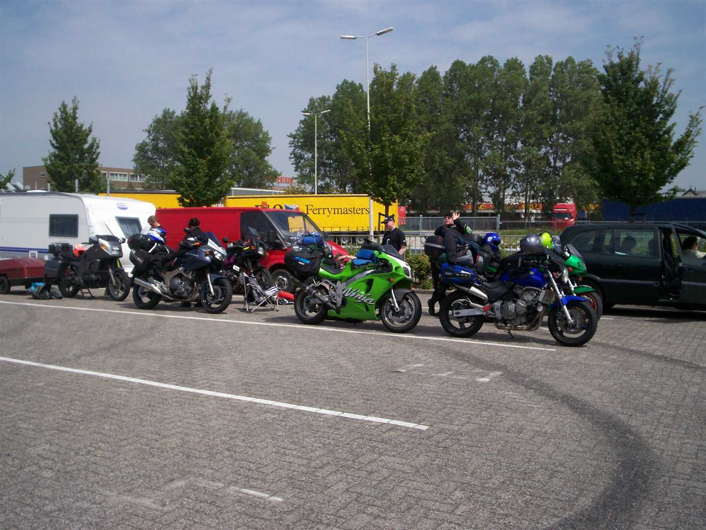 We arrived at the docks early so spent most of the afternoon sat at the side of the road waiting to board. When we did finally board, me and Nig got put in the overflow part of the deck, the reason we were given was that our bikes were narrower than the others - they obviously didn't look at Nig's world widest Ninja at all. Unfortunately the overflow part didn’t have a good points for securing the bikes and I was having real trouble tying the Hornet down. Then a friendly Dutch ferry worker came to my rescue, fashioning a ratchet strap from a single piece of rope!