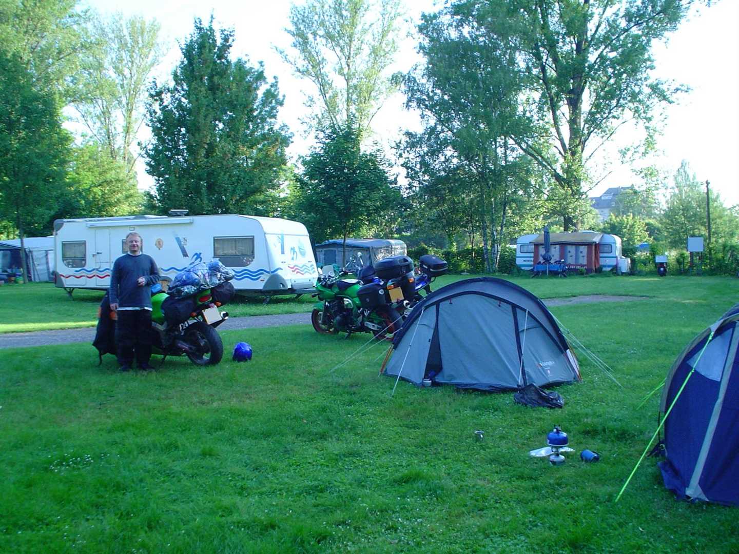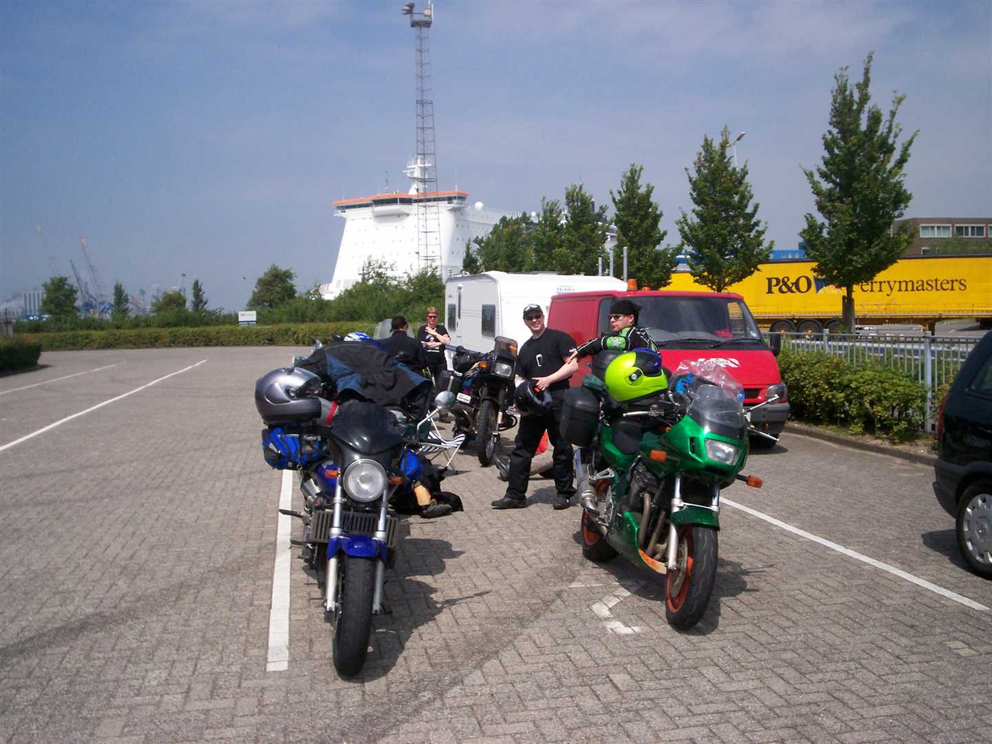 After many hours riding we arrived at Rotterdam. Nig had spend most of the last hour stood on his pegs because he could no longer bear to sit on his seat!