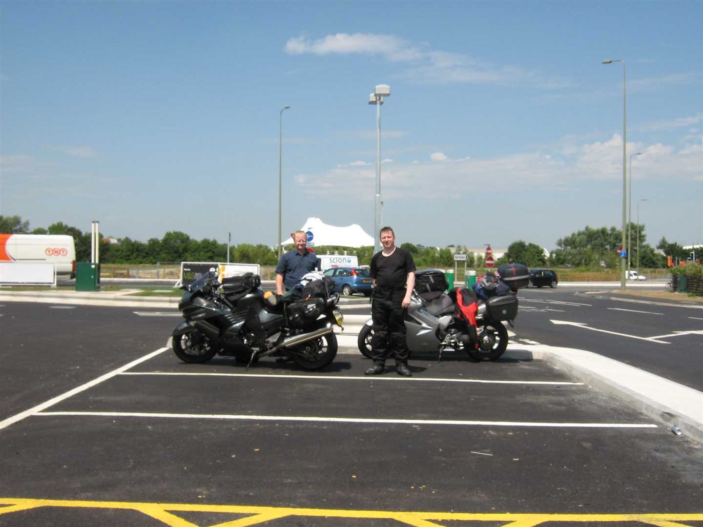 By the time I met Nig, I was completely chilled out. We had our breakfast at the services and then set off on the long ride to Portsmouth. The ride went very smoothly and seemed to pass quite quickly. We stopped every 50 miles so the riding never got tedious. It did stay very hot though - as soon as we stopped it was a race to get the gear off and cool down a bit!