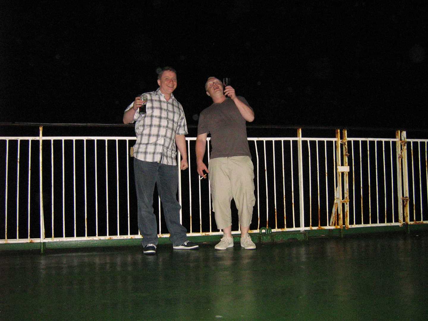 I had brought some whisky with me to save a bit of money on the boat, so I just bought cokes while we 'enjoyed' the dreadful cabaret. As is the way when I am pouring my own measures - they got larger and larger as the night went on - so by the early hours I was very very drunk! I didn't realise this until we went up onto the deck for Nig to have smoke and the fresh air hit me. We retired for the night shortly after that!