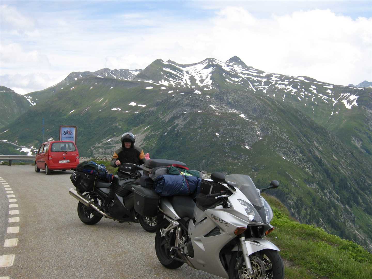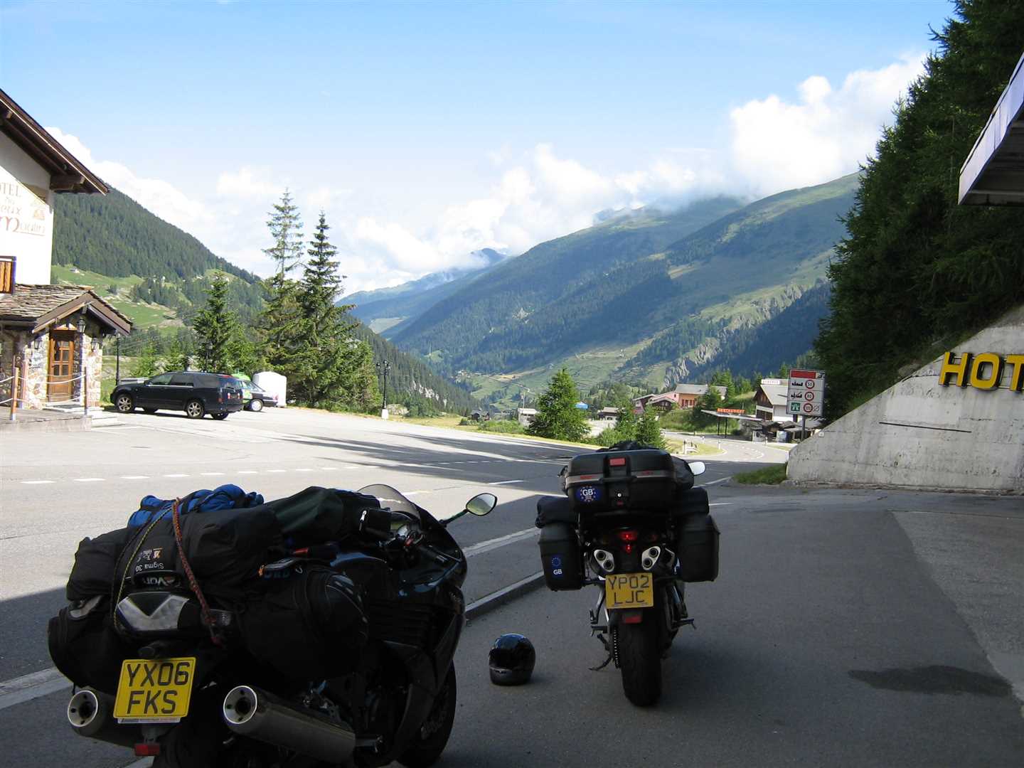 Fortunately it was a very nice day, and the scenery was instantly stunning when we set off. We heading into the mountains towards the St. Bernard Tunnel. We had decided to take the tunnel rather than the pass for a number of reasons including as I wasn't feeling too great, we'd heard the road over the pass was dodgy, and we were doing another better pass later in the day.
