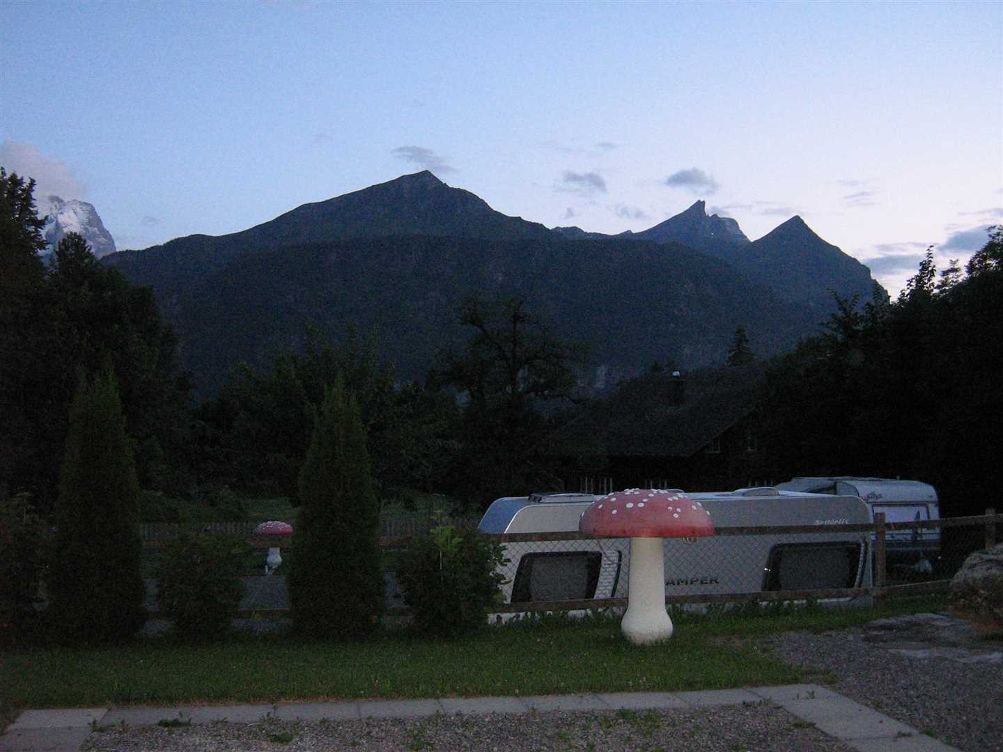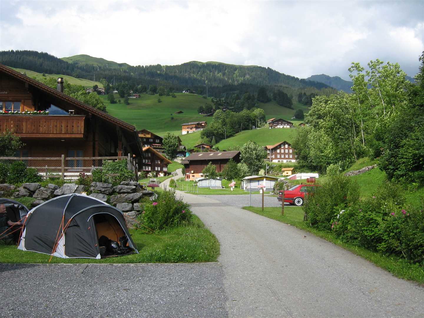 Our camp-site (Camping Hofstatt-Derfli) was very nice. We were still quite high up so we had stunning views of the mountains dotted with a few log cabins and there was a lovely smell of pine drifting in the air. The facilities on-site were also excellent. Everything was inside a large wood lodge. The toilets and showers were the best we'd seen on this trip, there was a room for washing-up and washing your clothes, and there was a heated living room with lots of table so you could eat inside if it wasn't so nice outside.