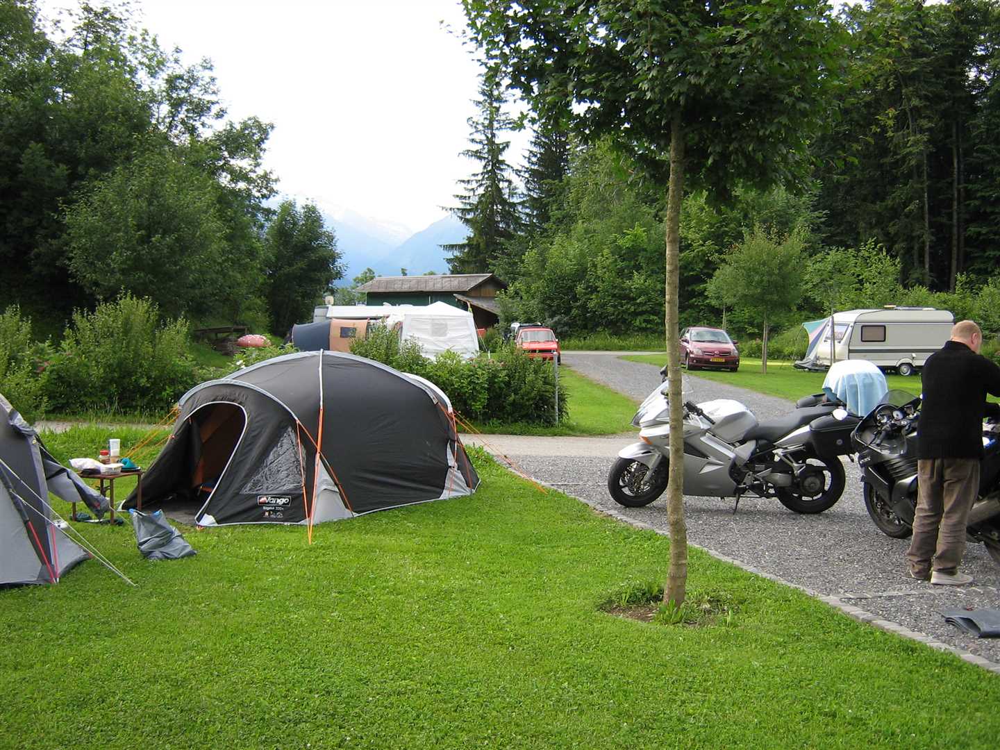We got a pot-noodle type thing for tea, and had just finished eating it when the Dutch couple in the tent next to us came over and gave us a full plate of pasta each! It was very nice and we had a beer with them afterwards. They were called Maurice and Margaret, Maurice restored guitars which earned him enough to allow him to take very long holidays – lucky man. He had a very impressive mobile phone with integrated GPS which he showed us it in detail.