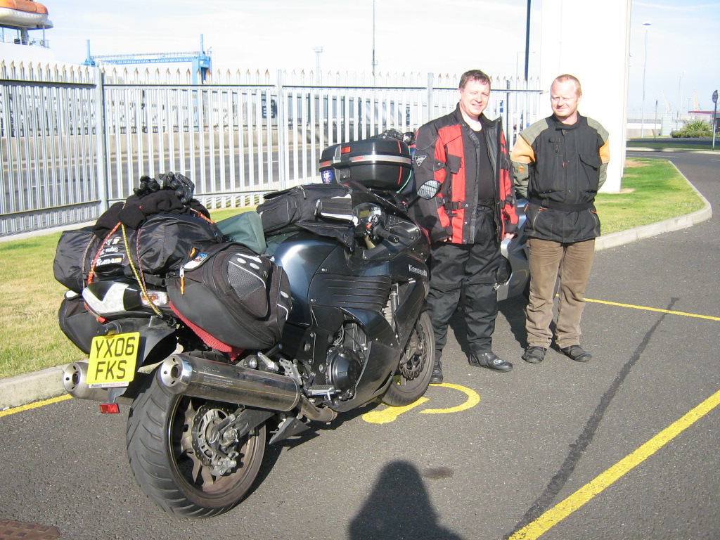 The ferry docked and after a brief wait for passport control, we were off the ferry. We parked up for a final photo - the only person I could see around us was a couple of police officers in a car watching everybody get off the boat, so I wondered up and asked if one of them would mind taking a photo. They were reluctant at first but once she'd decided to do it the nice police lady was very helpful.