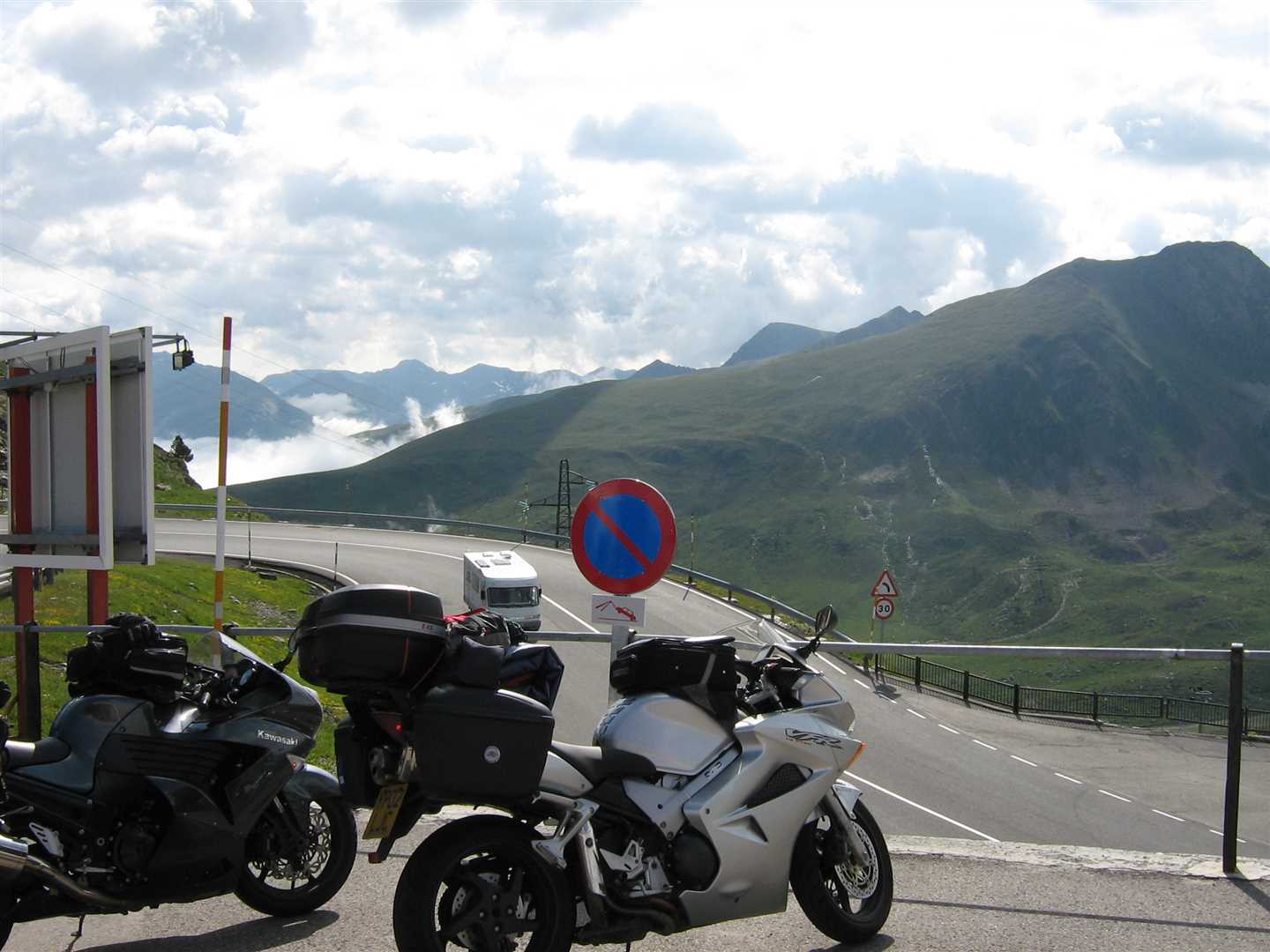 We went to the petrol station to fill Nig's bike and lube the chains, then set off over the mountain into France. The road up the mountain was very nice and the views at the top were stunning. It was quite cool that day and positively nippy on the top of the mountain - but we didn't mind - we were both refreshed and feeling good.