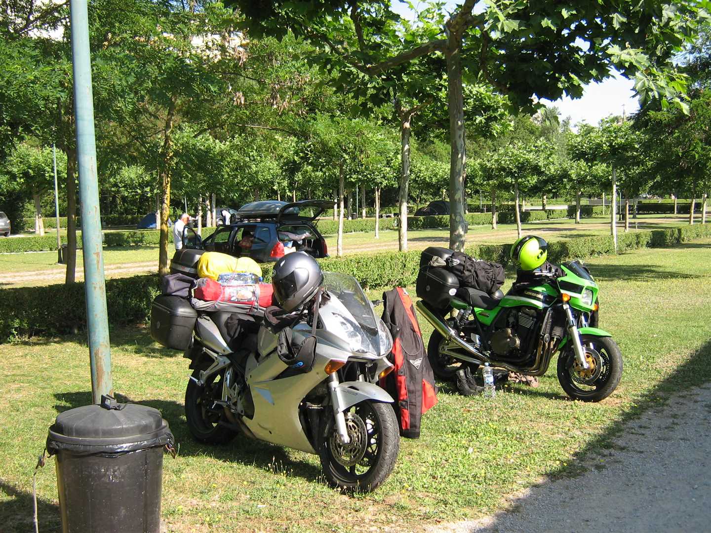 The site was very nice; on a cliff with stunning views overlooking the sea. The weather also improved and it turned into a very warm sunny day. We were allocated a super spot specifically for motorcyclists and bicyclists and started pitching the tents.