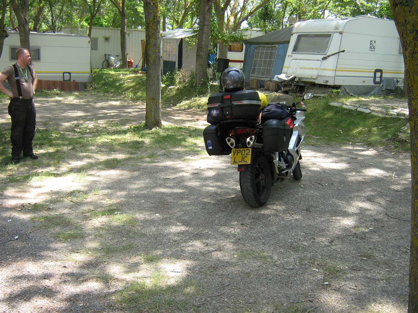 Regardless we checked in. They then opened the security gates and let us in. Nothing I can say can do justice to quite how, well unpleasant for want of a better word, the place was. The camping places were small rectangles bunched closely together. They were made from hard gravel on top of solid earth. There was no way to pitch a tent. On these places were semi-permanent caravans, probably used by local residents as a place to spend the weekend. Most of the caravans had home made extensions built onto them made from all sorts, from corrugated iron and chicken wire to fully built wooden cabins. It reminded us both of an American trailer pack and we nick-named it 'Hicksville'!