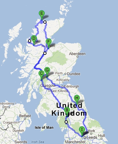 Nig planned the general route for this trip. We had our first night in The Lakes then headed up the west to the north coast.