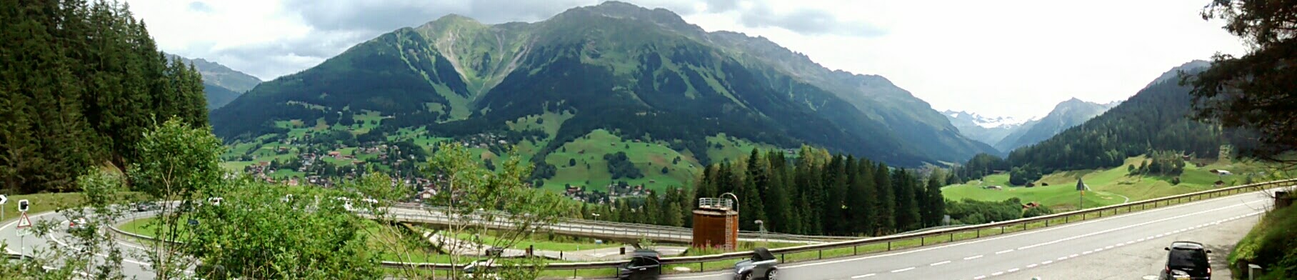 Our route took us around a very pretty dam and through a tunnel with arches on one side so we could see the lake - it was lovely. Then we went through a long tunnel which took us into Switzerland.